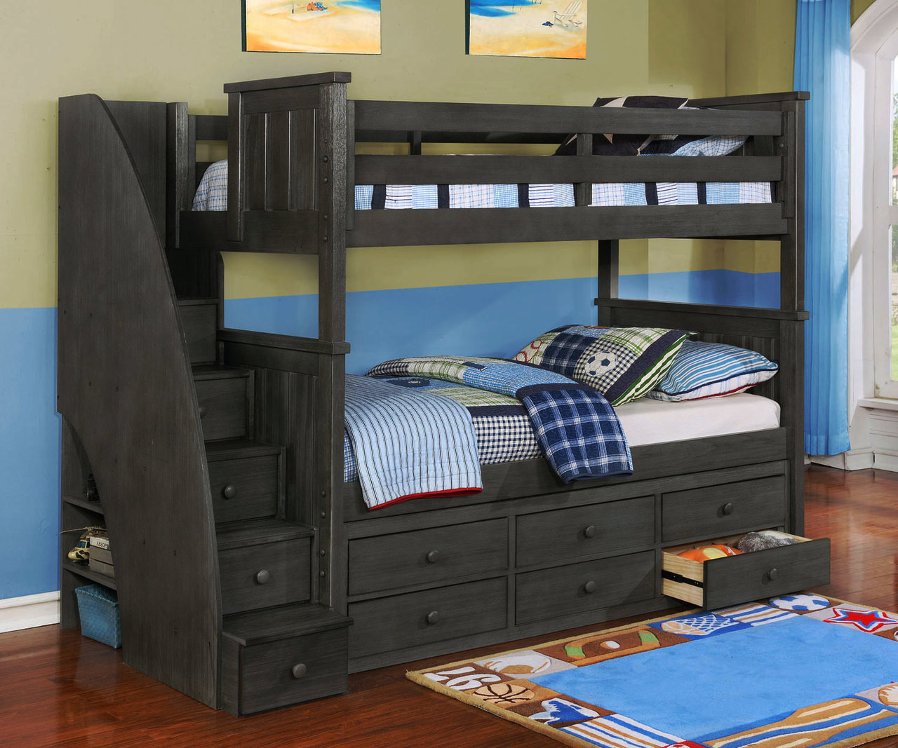 Brandon Bunk Bed With Stairs In Driftwood Gray Allen House Kids Loft Beds And Bunk Beds