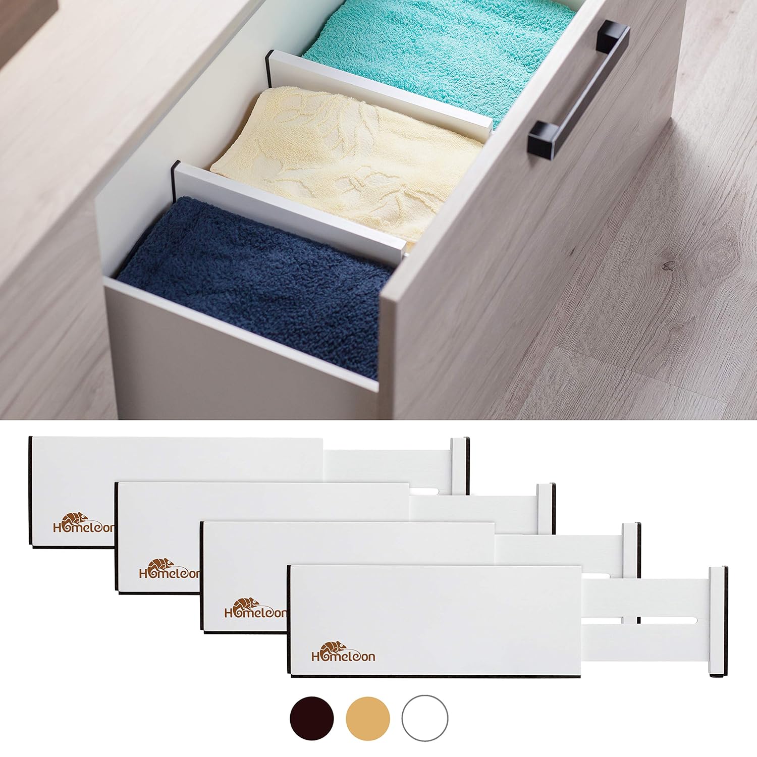 Homeleon Bamboo Dresser Drawer Organizer Dividers 11 17 Expandable 4 Tall White Adjustable Underwear Sock Bra Clothes Drawer Organizer Desk And Kitchen Drawer Organizer For Deep Drawers Amazon In Home Kitchen