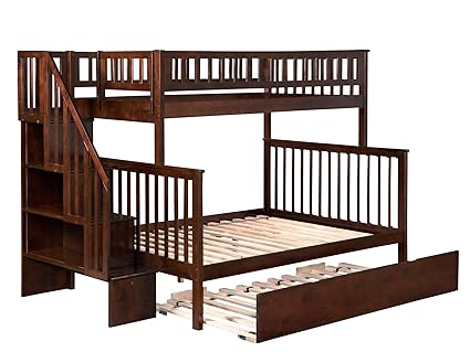Atlantic Furniture Woodland Staircase Bunk Bed Twin Over Full With Twin Size Urban Trundle Bed In Walnut Amazon In Home Kitchen