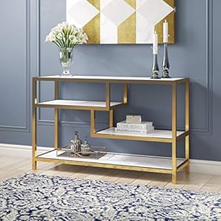 The tall slim and wide Meridian Furniture Inc Cameron Gold Console Table is perfectly scaled to suit your entryway hall or behind the sofa. More Buying Choices 14461 6 used. Narrow metal a - Space saving narrow console - Versatile slim profile fits in anywhere - Glass top shelf and white glass bottom shelf - Simple linear look - Living room hallentry dining room or open concept living space - Glam style - Gold w white glass - Overall.