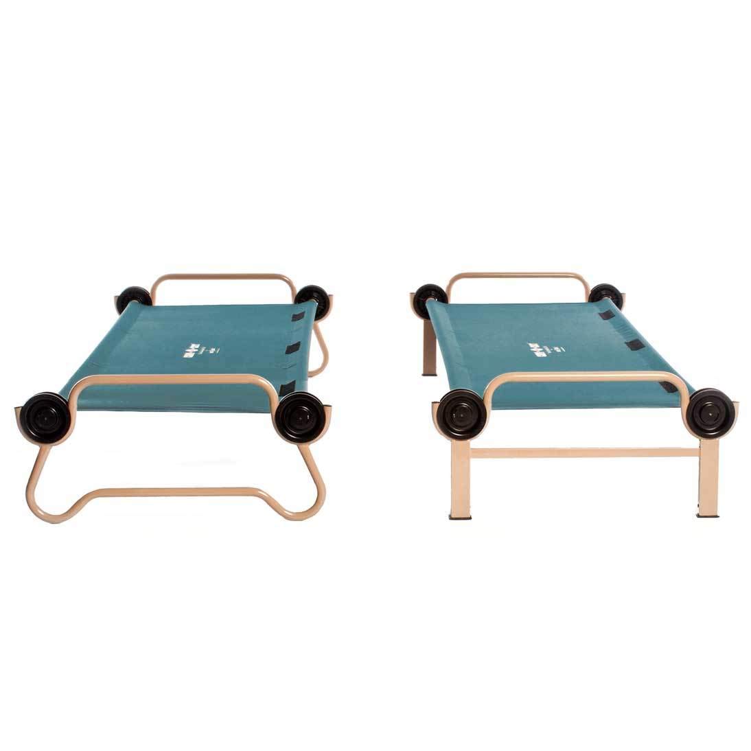 Designed to fit a broad range of family and dome tent designs the Disc-O-Bed XL Cot system features a rounded bed end frame on the bottom bunk to resist ground sinking and damage to the tent floor. Designed for use as a 2-person bunk or 2 single cots this system gives outdoor enthusiasts a modular portable compact and ultra strong sleeping solution. Camping just got more comfortable with Disc-O-Bed and its modular disc bed system.