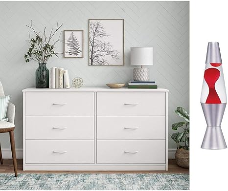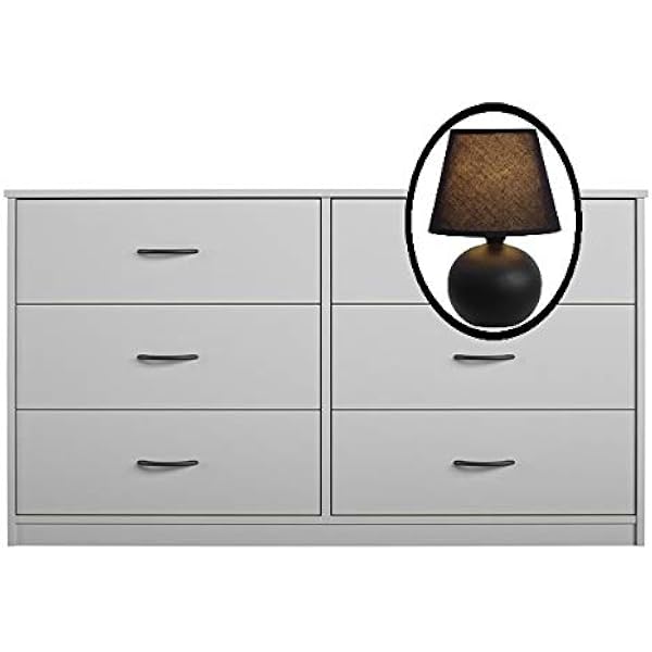 Amazon Com Mainstay 6 Drawer Dresser And Top Mini Lamp Bundle Dove Gray Furniture Decor