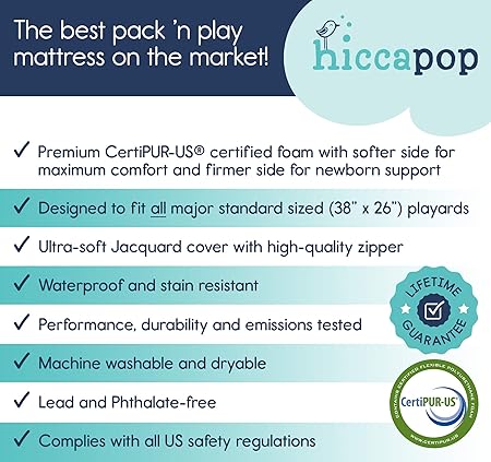 Hiccapop Pack And Play Mattress Pad Dual Sided W Firm Side For Babies Soft Memory Foam Side For Toddlers Memory Foam Play Yard Mattress Pad Playard Mattress Fits Most Pack