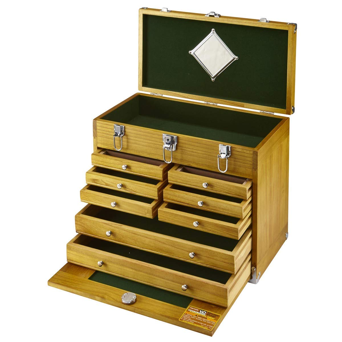 Collectibles Tool Boxes Chests 8 Drawer Wood Tool Chest Box Storage Machinist Carpenter Chrome Hardware Felt