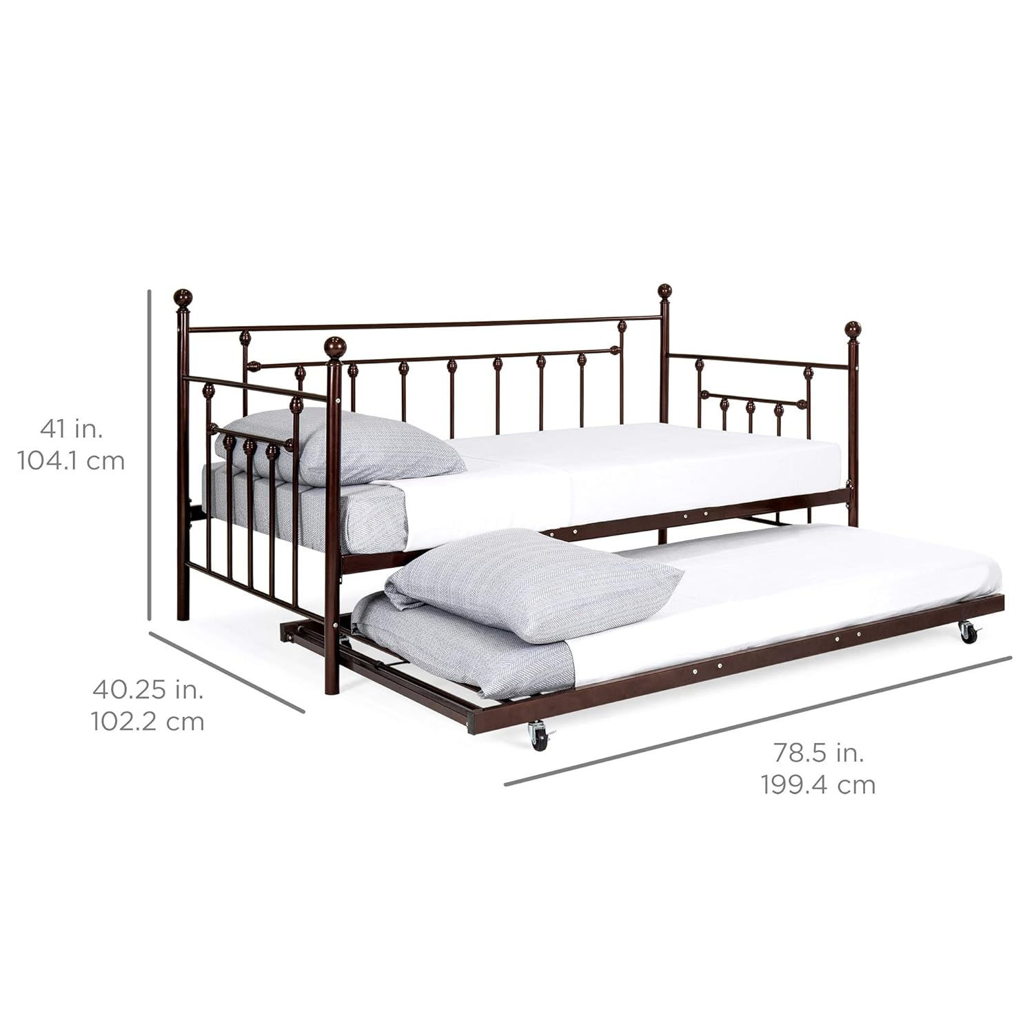 Best Choice Products Multifunctional Twin Sized Metal Guest Room Lounge Daybed Frame W Trundle Rounded Finials Bronze Amazon In Home Kitchen
