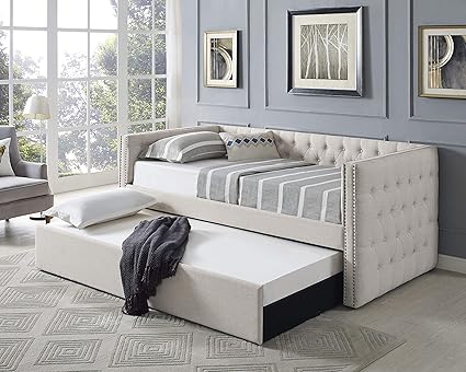 Best Master Furniture Laura Tufted Daybed Trundle Twin Bed Beige Amazon In Home Kitchen