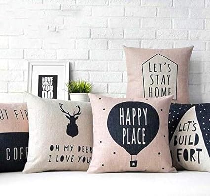Buy Femfairy Jute Decorative Throw Pillow Cushion Covers 16 X 16 Inch 40 X 40 Cm Navy Blue Set Of 5 Online At Low Prices In India Amazon In