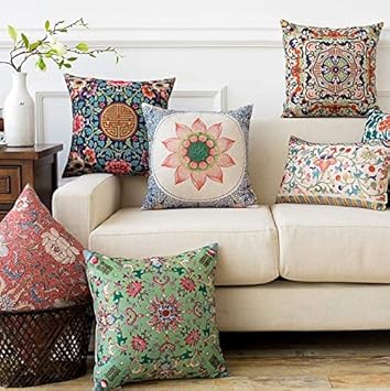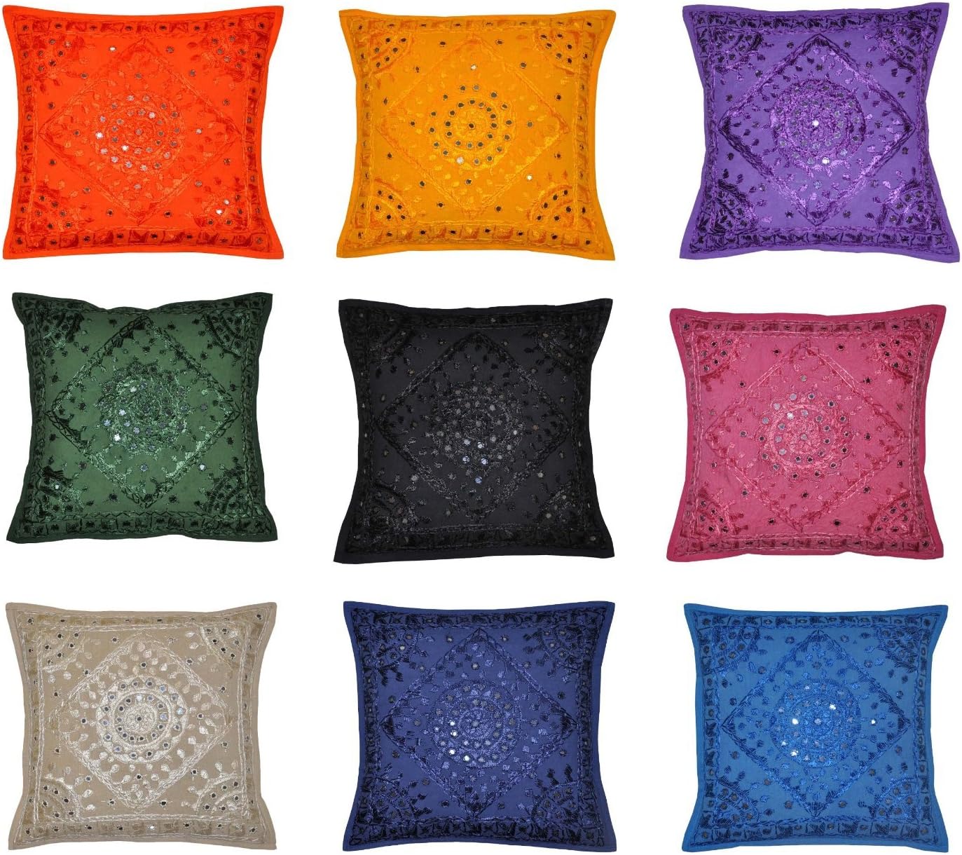 Amazon Com Rajasthali Indian Decor Handmade Cotton Cushion Cover Pillow Covers 16 X 16 Inches 10 Pcs Lot Home Kitchen