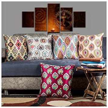 Buy Nestroots Set Of 5 Cushion Covers Satin Designer Decorative Pillow Cushion Covers 16 X 16 Inch Or 40 X 40 Cm Batik Cateye Online At Low Prices In India Amazon In