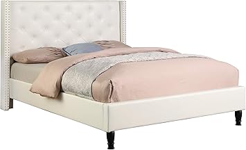 White Queen Size Modern Headboard Tufted Design Leather Look Upholstered Platform Bed Amazon In Home Kitchen