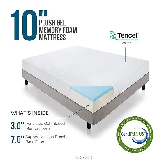 Lucid Comfort Collection 10in Plush Gel Memory Foam Tight Top Queen Mattress Lucc10qq30gf The Home Depot