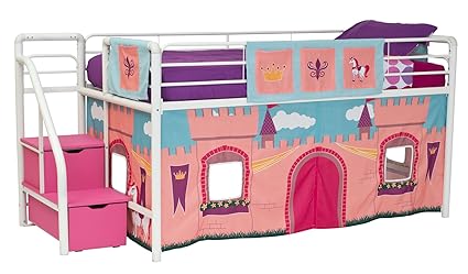 Dhp Junior White Metal Loft Bed With Pink Storage Steps And Princess Castle Curtain Set Kids Furniture Twin Size Amazon In Home Kitchen