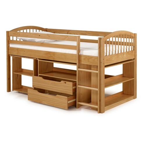 Maxtrix Storage Study and Shelves. The kid bed has three rows of shelves line the side of this loft bed and to add even more storage the staircase features pull-out drawers. Chelsea Home Loft Bed With Desk Top.