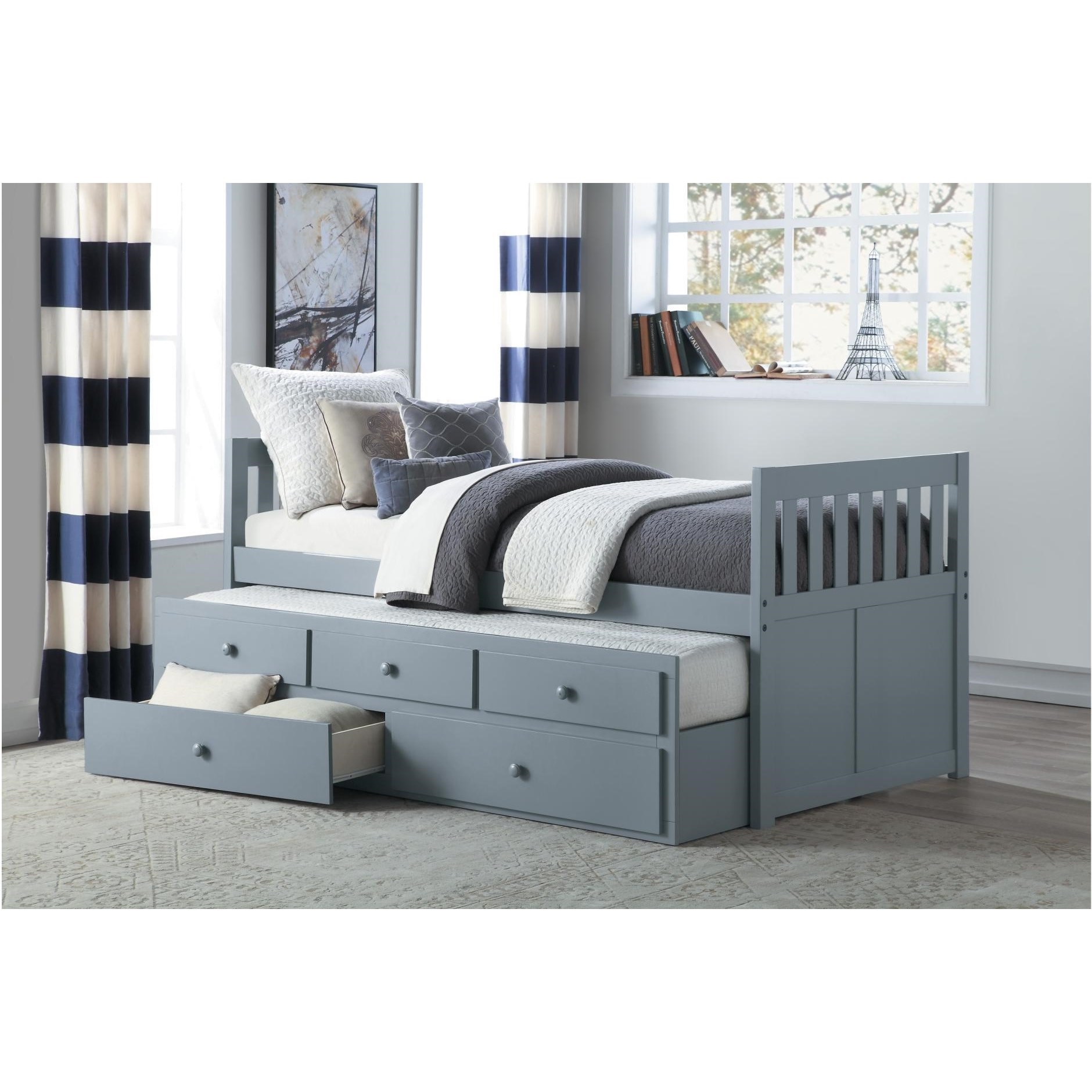 Twin Captain S Bed Storage Daybed With Trundle And Drawers For Kids Guests Grey Amazon In Home Kitchen