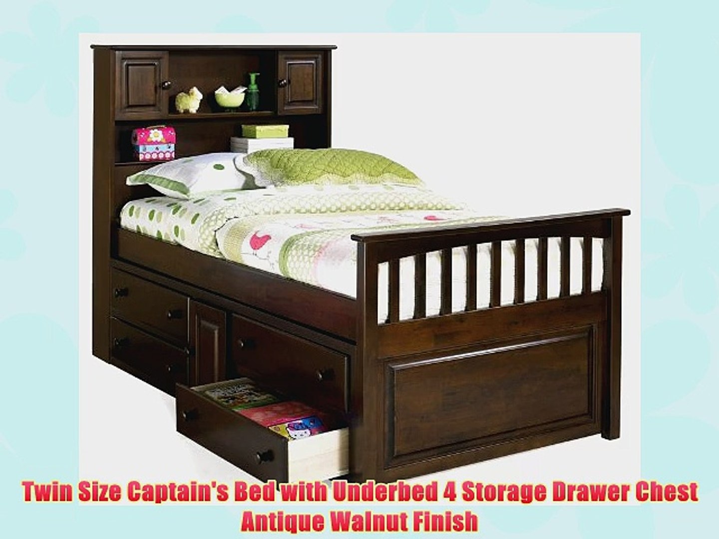 Twin Size Captain S Bed With Underbed 4 Storage Drawer Chest Antique Walnut Finish Video Dailymotion