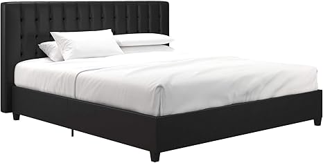 Amazon Com Dhp Emily Upholstered Platform Bed Black Faux Leather King Furniture Decor