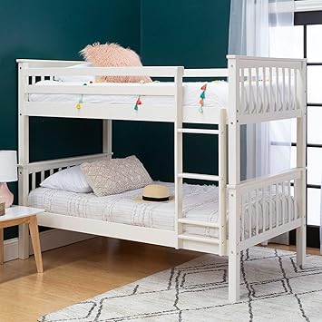 Max Lily Solid Wood Twin Over Twin Bunk Bed White Amazon In Home Kitchen