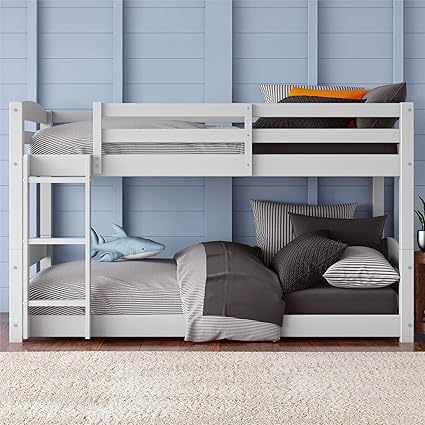 Amazon Com Low Bunk Bed Twin Over Twin Bunk Bed With Slide And Ladder For Boy Girls And Young Teens White Kitchen Dining