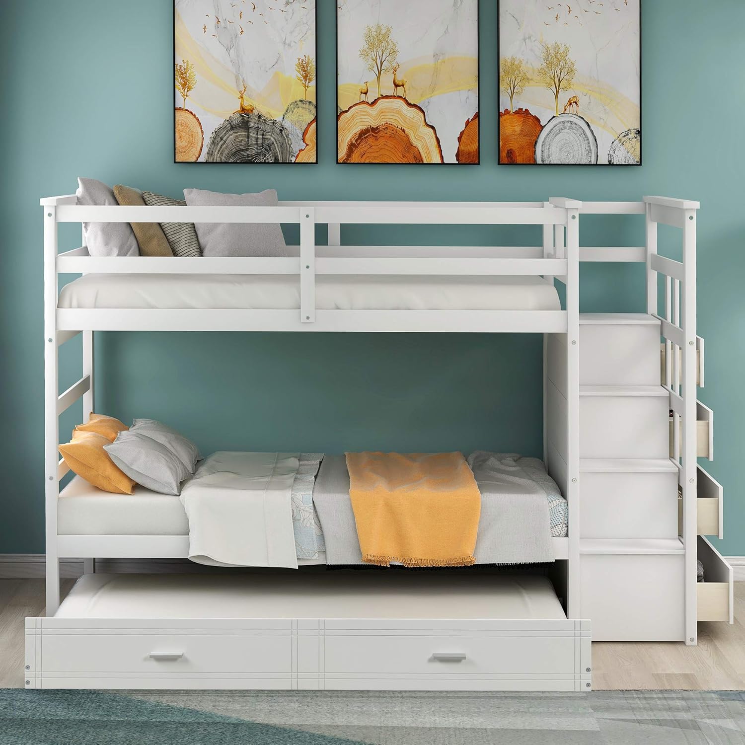 Bunk Bed For Kids Twin Over Twin Bunk Bed With Trundle And Staircase Trundle Bed With Rails White Amazon In Home Kitchen