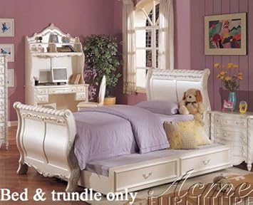 Amazon Com Acme Twin Size Sleigh Bed With Trundle White Finish Furniture Decor