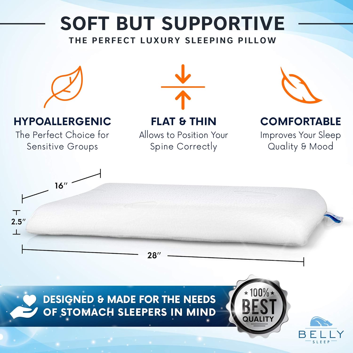 Both the AmeriSleep Dual Comfort Pillow and Ultra Slim Gel Memory Foam Pillow For Stomach Sleepers pay extra attention to your neck area which is what you need as a stomach sleeper. Videos for this product. Both are the ideal thinness for maximum comfort but manage to provide ample support so that your spine is in better alignment.