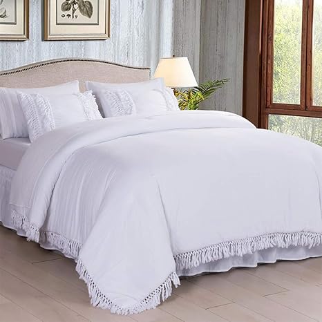 Amazon Com Sexytown White Boho Bed In A Bag Comforter Set Queen 8 Piece Ruffle Tassel Fringe Bedding Comforter All Season Ultra Soft Comfy Complete Set 1 Comforter 2 Pillow Shams 4pc Sheet Set 1 Bed Skirt