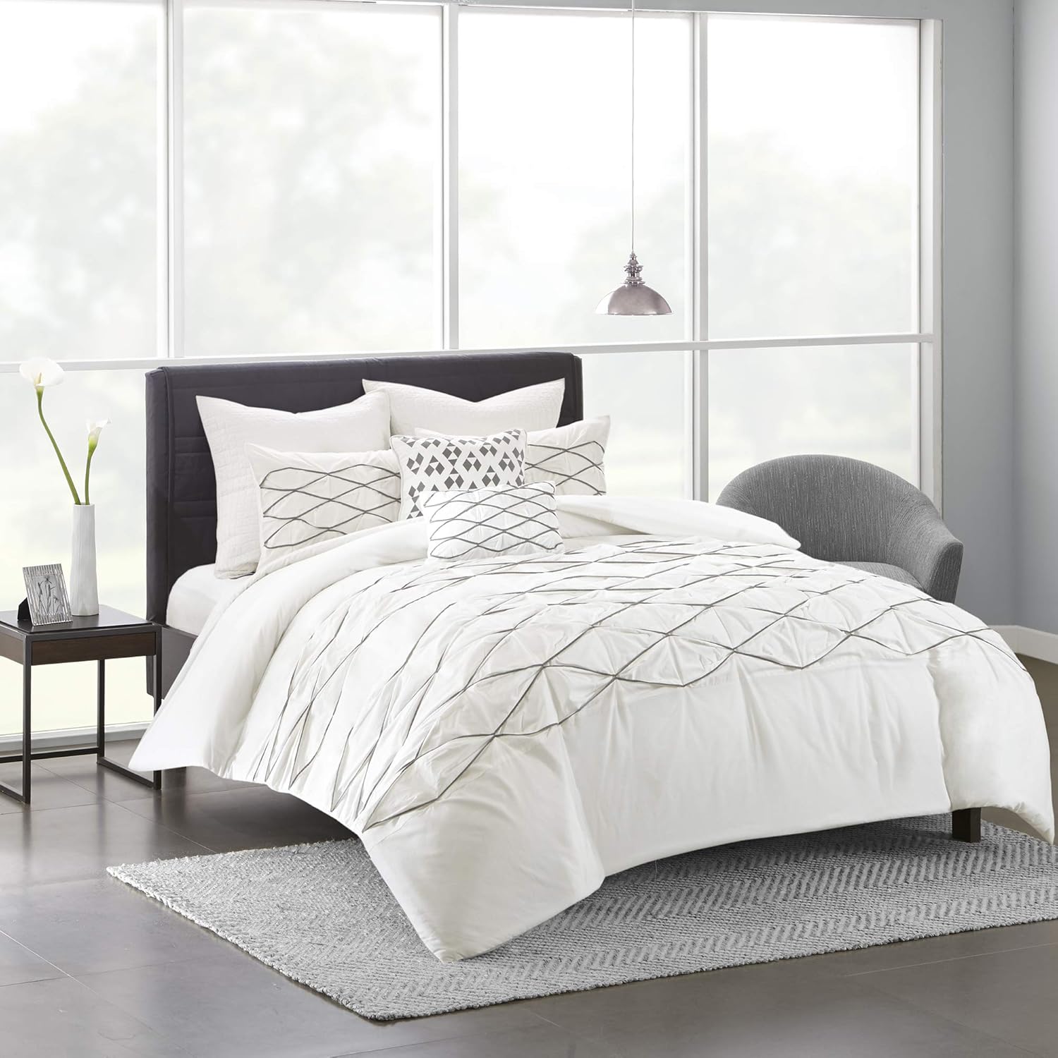 Comforter Set 7 Piece Bed In A Bag Queen Size White Premium Pinch Pleat Solid Bedding Set 1 Comforter 2 Comforter Sets Comforters Queen Size Comforter Sets