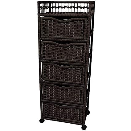 Oriental Furniture 38 Natural Fiber Chest Of Drawers On Wheels Black Home Kitchen Furniture