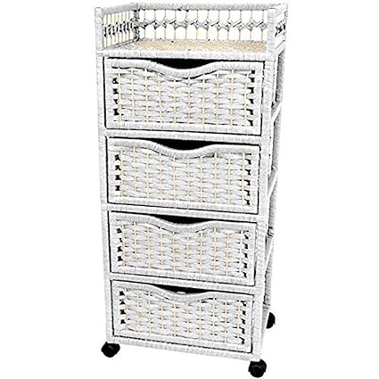 Buy White Oriental Furniture 38 Natural Fiber Chest Of Drawers On Wheels White Online At Low Prices In India Amazon In