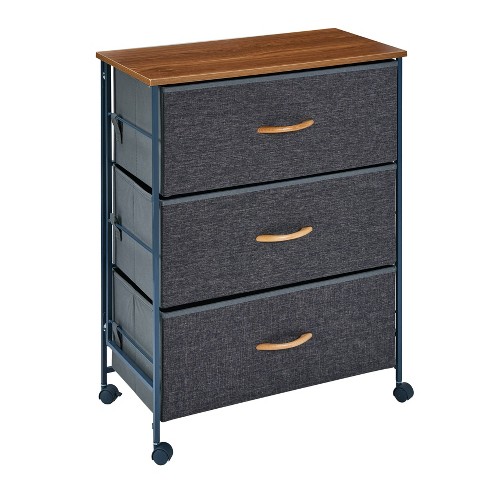 Fabric 3 Drawer Storage Dresser Chest With Steel Frame And Caster Wheels Danya B