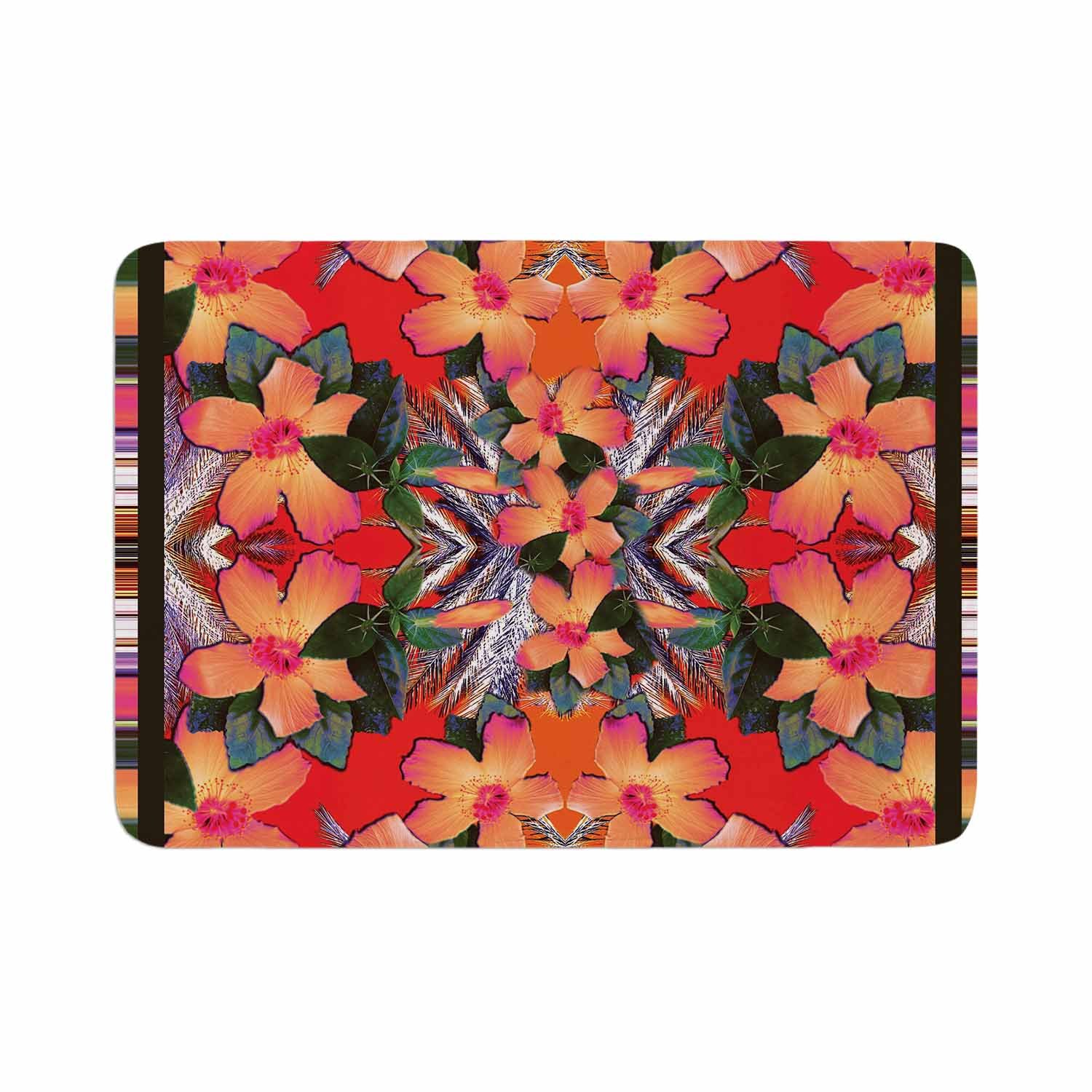 Kess Inhouse Sonal Nathwani Multi Bouquet Orange Green Memory Foam Bath Mat 17 By 24