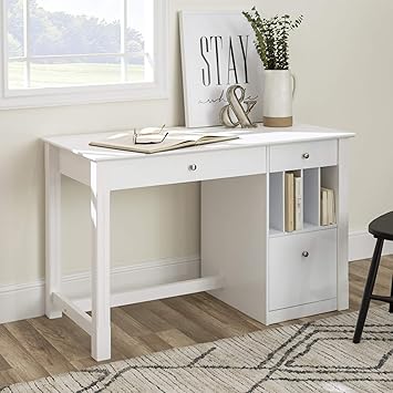 We Furniture Modern Wood Computer Writing Desk Storage File Drawer Office 48 Inch White Amazon In Home Kitchen