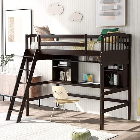 Amazon Com Merax Twin Loft Bed Solid Wood Twin Size Loft Bed With Shelves And Desk For Kids Teens Adults Espresso Kitchen Dining