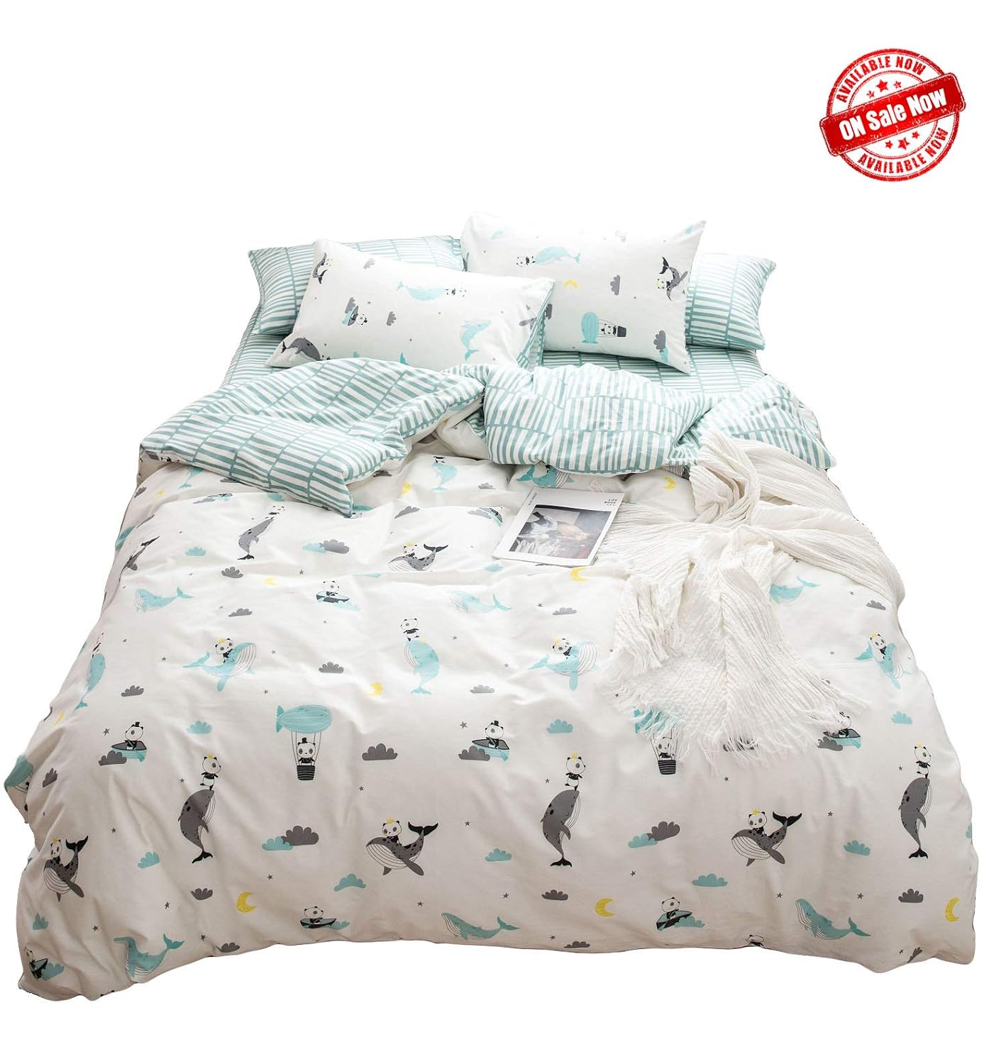 Buy Jane Yre Ocean Kids Twin Duvet Cover Space Rocket Panda Print Duvet Cover Twin Cotton Reversible White Blue Striped Duvet Cover Cartoon Star Universe Planets Bedding Sets 3 Pieces No Comforter Online