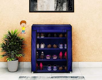 Flipzon Iron And Fabric Multi Purpose Shoe Rack 4 5 Shelf Tier Organiser Blue Make In India Amazon In Home Kitchen