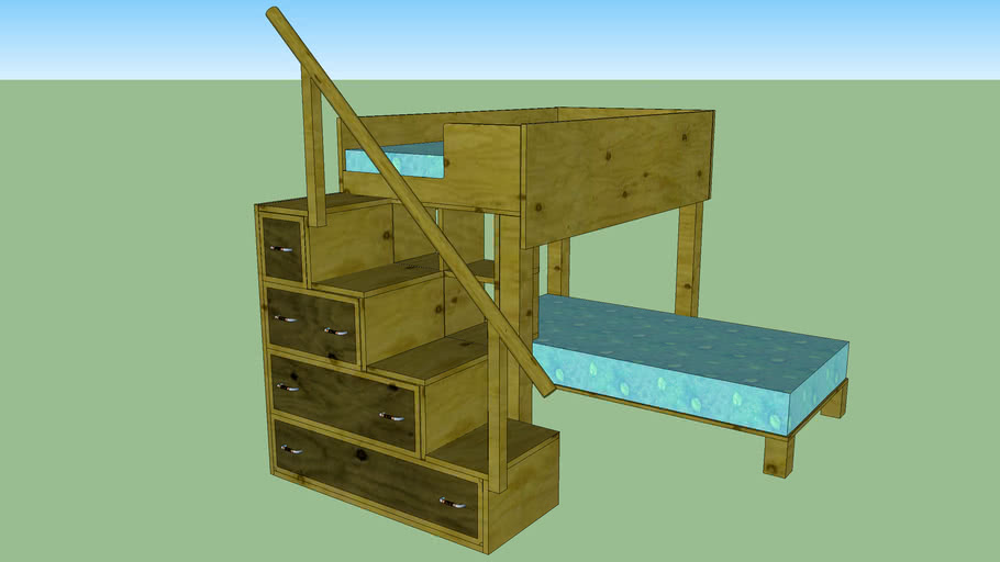 L Shaped Bunk Beds Desk And Steps With Drawers 3d Warehouse