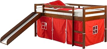 Amazon Com Donco Kids Low Loft Bed With Slide With Tent Twin Light Espresso Red Furniture Decor