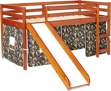 Amazon Com Donco Kids Low Loft Bed With Slide With Tent Twin Light Espresso Camo Furniture Decor