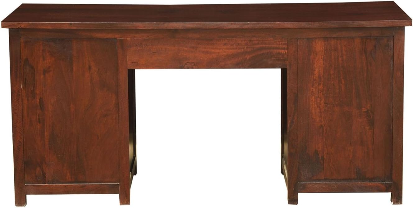 Homescapes Large Mangat Solid Dark Wood Computer Desk 100 Solid Mango Hard Wood No Veneer Handmade Wooden Office Desk With Drawers 160 X 60 X 75 Cm Amazon Co Uk Kitchen Home